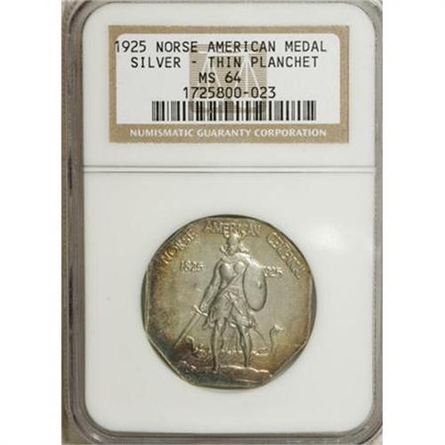 <B>1925 Medal Norse Thin Planchet MS64 NGC.</B></I> NGC Census: (0/0). PCGS Population (80/24). (#9451)<BR><BR><b>Shipping:</b> Coins & Currency (<a target="_blank" href="http://www.heritageauctions.com/common/shipping.php">view shipping information</a>)
