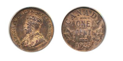 1925. PCGS graded Mint State-64. Red-Brown. 20% red luster.
