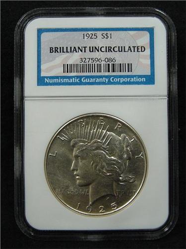 1925 U.S. PEACE DOLLAR. Graded by NGC. BU.