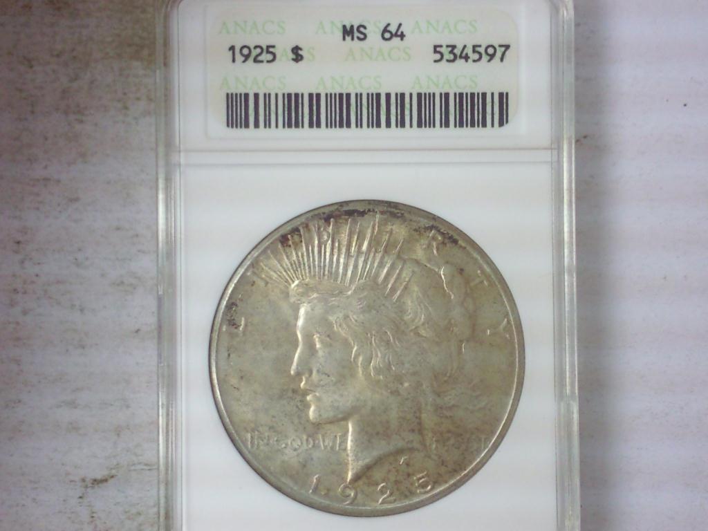 1925 PEACE SILVER DOLLAR ANACS MS64
