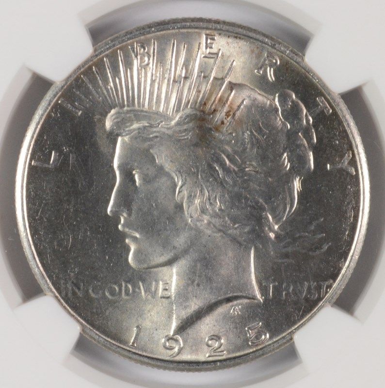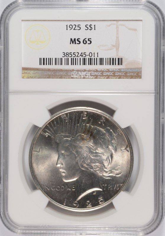 1925 PEACE SILVER DOLLAR, NGC MS-65 GEM BLAST WHITE!
