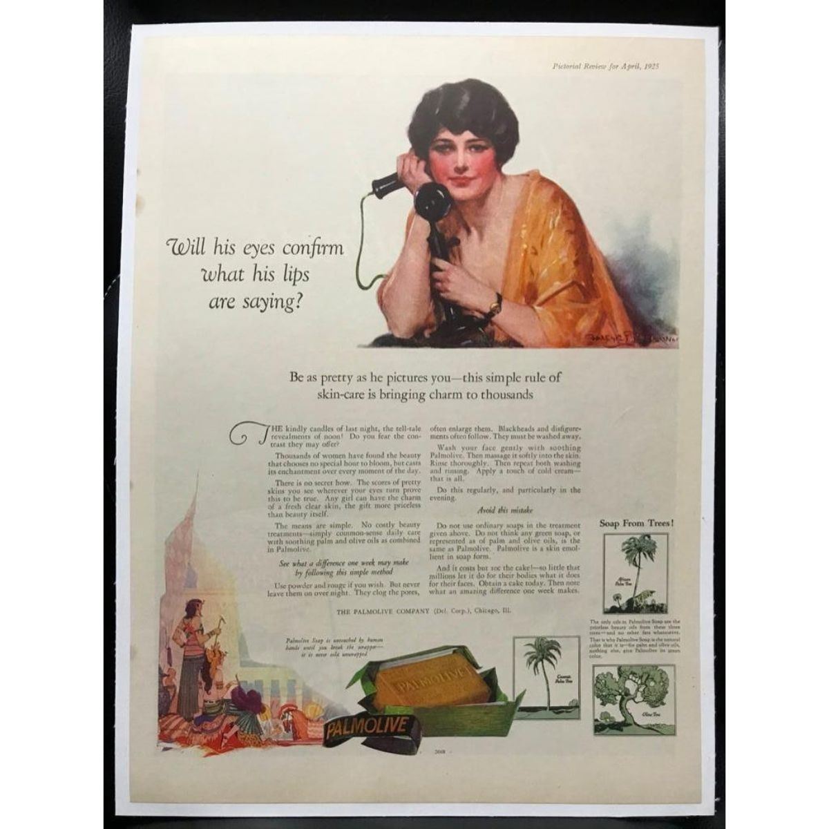 1925 Palmolive magazine ad from an issue of Pictorial Review. 10 1/2" X 14" mounted on archival linen canvas for preservation.