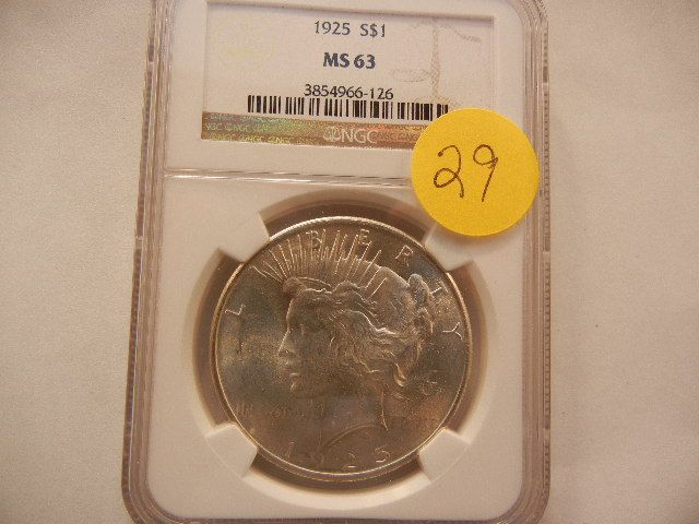 Coins that are not PCGS, NGC or other reputable grading services are not graded by auctioneer and are only mere opinions of the seller. Please use your own judgment to condition and grade of any item. Again, please ask questions before you bid by calling the Auction Gallery at 937-547-3202 at least 2 hours before the live auction begins. If we are unavailable please leave a message and we will answer your call as soon as possible. Questions will not be answered during the auction.