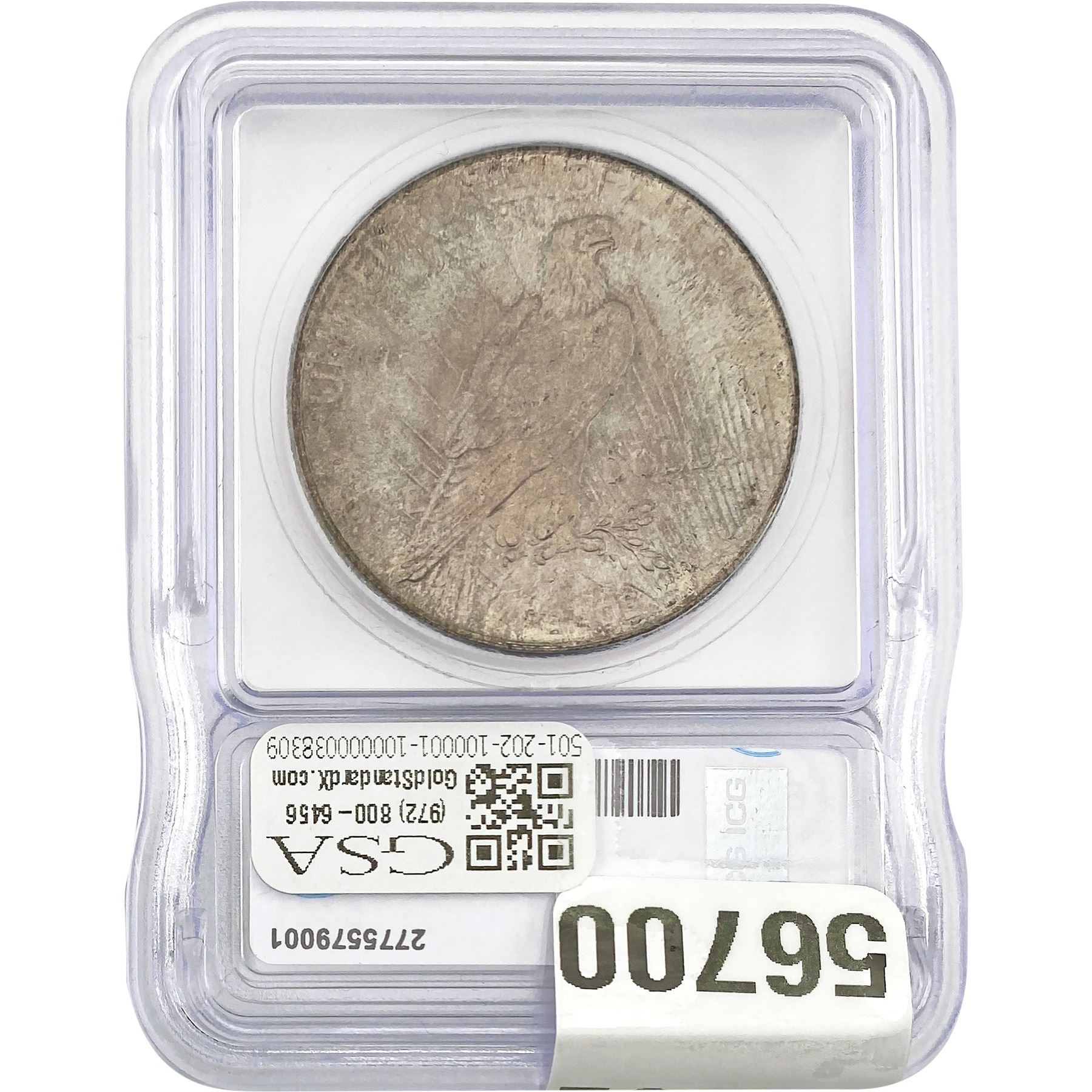 COINS AND CURRENCY LISTED IN GSA’S CATALOG AS GRADED AND ENCAPSULATED BY PCGS, NGC, ANACS, ICG, PCGS CURRENCY, PMG, PCGS BANKNOTE GRADING, CMC OR ANY OTHER THIRD-PARTY GRADING SERVICE ARE LIKEWISE SOLD “AS-IS” EXCEPT AS EXPRESSLY SET FORTH HEREIN. ALL THIRD-PARTY GRADING SERVICE GUARANTEES, INCLUDING AUTHENTICITY, ARE THE SOLE RESPONSIBILITY OF THE THIRD-PARTY GRADING SERVICE AND NOT WARRANTIES OR GUARANTEES OF GSA. BIDDERS SHOULD CONTACT THESE THIRD-PARTY GRADING SERVICES DIRECTLY WITH RESPECT TO ANY CLAIMS OR QUESTIONS THEY MAY HAVE CONCERNING THEIR GUARANTEES AND WARRANTIES. BIDDERS ACKNOWLEDGE AND AGREE THAT AUCTIONEER IS NOT BOUND BY OR LIABLE FOR ANY OPINION OR CERTIFICATION BY ANY THIRD-PARTY GRADING SERVICE. REMOVAL OF A PRODUCT FROM ITS PROTECTIVE CASING OR HOLDER OR ALTERATION OF ANY COIN HOLDER WAIVES ALL RIGHTS CONCERNING THE PRODUCT CONTAINED THEREIN.