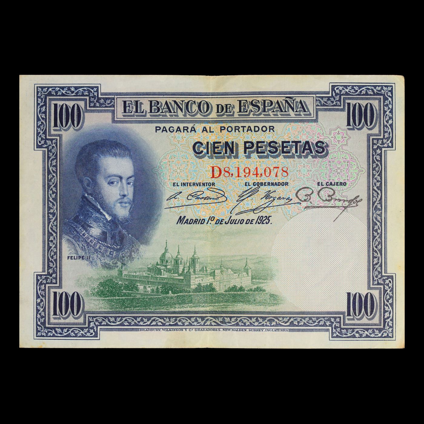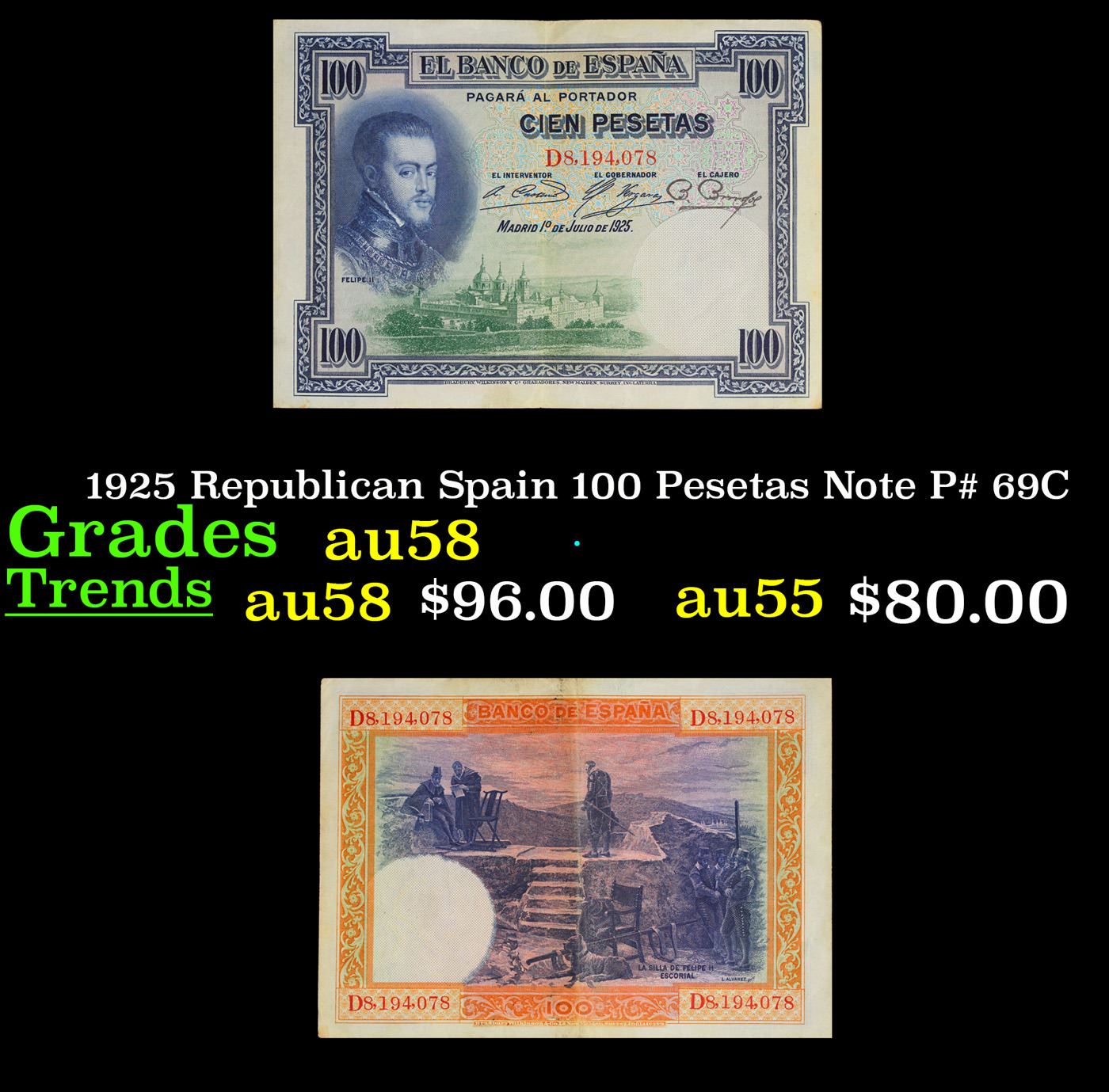 1925 Republican Spain 100 Pesetas Note P# 69C Grades Choice AU/BU Slider.