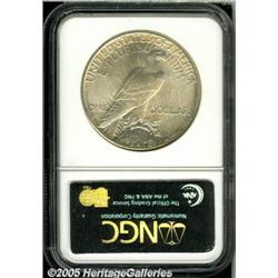 <B>1925-S<img border='0' src='http://www.heritagecoins.com/images/star.gif' width=10 height=10>$1 MS64 NGC.</B></I> Brilliant, well struck, and a few scuffs in the left obverse field.