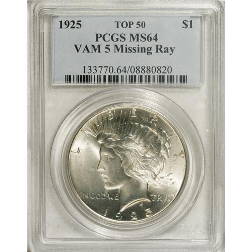 1925 S$1 MS64 PCGS. VAM-5, Top 50. The top left ray be