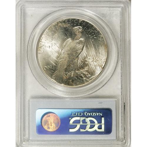 <B>1925 S$1 MS64 PCGS.</B></I> VAM-5, Top 50. The top left ray between the eagle's leg and tail feathers has been polished off. Occasional whispers of tan-gold color visit fully lustrous surfaces that exhibit sharply struck motifs. A few ticks on each side preclude a higher grade.<BR><BR><b>Shipping:</b> Coins & Currency (<a target="_blank" href="http://www.heritageauctions.com/common/shipping.php">view shipping information</a>)