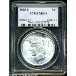 <TABLE cellSpacing=0 cellPadding=0 width="100%" bgColor=#000000 border=0><TBODY><TR><TD width="100%"><TABLE cellSpacing=1 cellPadding=3 width="100%" border=0><TBODY><TR><TD width="100%" bgColor=#79735c><FONT face=arial color=#ffffff size=3><B>Description</B> </FONT></TD></TR><TR><TD width="100%" bgColor=#ffffff><FONT face=arial size=2><B>1925-S $1 MS64 PCGS.</B></I> Well struck for the type, with highly lustrous, essentially brilliant surfaces. There are a few slide marks and milling marks on each side, and a small patch of tan color near the left reverse rim. </FONT></TD></TR></TBODY></TABLE></TD></TR></TBODY></TABLE><BR><A name=PricesRealized></A><TABLE cellSpacing=0 cellPadding=0 width="100%" bgColor=#000000 border=0><TBODY><TR><TD width="100%"><TABLE cellSpacing=1 cellPadding=3 width="100%" border=0><TBODY><TR><TD width="100%" bgColor=#79735c><A name=PR><FONT face=arial color=#ffffff size=3><B>Previous Prices from Heritage Auctions</B> </FONT></A></TD></TR><TR><TD bgColor=#f6f6ed><TABLE cellSpacing=0 cellPadding=0 width="100%" border=1><TBODY><TR><TD align=middle width="33%"><B>Date</B></TD><TD align=middle width="33%"><B>Service</B></TD><TD align=middle width="33%"><B>Price</B></TD></TR><TR bgColor=whitesmoke><TD width="33%"><B>01/11/1997</B></TD><TD width="33%">NGC</TD><TD width="33%">$460.00</TD></TR><TR bgColor=whitesmoke><TD width="33%"><B>01/11/1997</B></TD><TD width="33%">NGC</TD><TD width="33%">$460.00</TD></TR><TR bgColor=whitesmoke><TD width="33%"><B>05/19/1995</B></TD><TD width="33%">NGC</TD><TD width="33%">$322.30</TD></TR><TR bgColor=whitesmoke><TD width="33%"><B>05/19/1995</B></TD><TD width="33%">NGC</TD><TD width="33%">$322.30</TD></TR><TR bgColor=whitesmoke><TD width="33%"><B>03/04/1995</B></TD><TD width="33%">NGC</TD><TD width="33%">$990.00</TD></TR><TR bgColor=whitesmoke><TD width="33%"><B>03/04/1995</B></TD><TD width="33%">NGC</TD><TD width="33%">$990.00</TD></TR><TR bgColor=whitesmoke><TD width="33%"><B>05/16/2000</B></TD><TD width="33%">NGC</TD><TD width="33%">$360.00</TD></TR><TR bgColor=whitesmoke><TD width="33%"><B>05/16/2000</B></TD><TD width="33%">NGC</TD><TD width="33%">$360.00</TD></TR><TR bgColor=whitesmoke><TD width="33%"><B>02/13/1998</B></TD><TD width="33%">NGC</TD><TD width="33%">$286.00</TD></TR><TR bgColor=whitesmoke><TD width="33%"><B>02/13/1998</B></TD><TD width="33%">NGC</TD><TD width="33%">$286.00</TD></TR><TR bgColor=whitesmoke><TD width="33%"><B>04/11/1997</B></TD><TD width="33%">NGC</TD><TD width="33%">$286.00</TD></TR><TR bgColor=whitesmoke><TD width="33%"><B>04/11/1997</B></TD><TD width="33%">NGC</TD><TD width="33%">$286.00</TD></TR><TR bgColor=whitesmoke><TD width="33%"><B>10/01/1998</B></TD><TD width="33%">NGC</TD><TD width="33%">$523.00</TD></TR><TR bgColor=whitesmoke><TD width="33%"><B>10/01/1998</B></TD><TD width="33%">NGC</TD><TD width="33%">$523.00</TD></TR><TR bgColor=whitesmoke><TD width="33%"><B>11/01/1996</B></TD><TD width="33%">NGC</TD><TD width="33%">$715.00</TD></TR><TR bgColor=whitesmoke><TD width="33%"><B>11/01/1996</B></TD><TD width="33%">NGC</TD><TD width="33%">$715.00</TD></TR><TR bgColor=whitesmoke><TD width="33%"><B>05/31/2001</B></TD><TD width="33%">NGC</TD><TD width="33%">$373.75</TD></TR><TR bgColor=whitesmoke><TD width="33%"><B>05/31/2001</B></TD><TD width="33%">NGC</TD><TD width="33%">$373.75</TD></TR><TR bgColor=whitesmoke><TD width="33%"><B>05/31/2003</B></TD><TD width="33%">NGC</TD><TD width="33%">$402.50</TD></TR><TR bgColor=whitesmoke><TD width="33%"><B>05/31/2003</B></TD><TD width="33%">NGC</TD><TD width="33%">$402.50</TD></TR><TR bgColor=whitesmoke><TD width="33%"><B>02/04/2003</B></TD><TD width="33%">NGC</TD><TD width="33%">$391.00</TD></TR><TR bgColor=whitesmoke><TD width="33%"><B>02/04/2003</B></TD><TD width="33%">NGC</TD><TD width="33%">$391.00</TD></TR><TR bgColor=whitesmoke><TD width="33%"><B>08/06/2003</B></TD><TD width="33%">ANACS</TD><TD width="33%">$276.00</TD></TR><TR bgColor=whitesmoke><TD width="33%"><B>08/06/2003</B></TD><TD width="33%">ANACS</TD><TD width="33%">$276.00</TD></TR><TR bgColor=whitesmoke><TD width="33%"><B>08/06/2003</B></TD><TD width="33%">ANACS</TD><TD width="33%">$322.00</TD></TR><TR bgColor=whitesmoke><TD width="33%"><B>08/06/2003</B></TD><TD width="33%">ANACS</TD><TD width="33%">$322.00</TD></TR><TR bgColor=whitesmoke><TD width="33%"><B>02/24/2002</B></TD><TD width="33%">ANACS</TD><TD width="33%">$319.70</TD></TR><TR bgColor=whitesmoke><TD width="33%"><B>02/24/2002</B></TD><TD width="33%">ANACS</TD><TD width="33%">$319.70</TD></TR><TR bgColor=whitesmoke><TD width="33%"><B>01/05/2001</B></TD><TD width="33%">ANACS</TD><TD width="33%">$805.00</TD></TR><TR bgColor=whitesmoke><TD width="33%"><B>01/05/2001</B></TD><TD width="33%">ANACS</TD><TD width="33%">$805.00</TD></TR><TR bgColor=whitesmoke><TD width="33%"><B>03/01/2003</B></TD><TD width="33%">PCGS</TD><TD width="33%">$414.00</TD></TR><TR bgColor=whitesmoke><TD width="33%"><B>03/01/2003</B></TD><TD width="33%">PCGS</TD><TD width="33%">$414.00</TD></TR><TR bgColor=whitesmoke><TD width="33%"><B>08/06/2003</B></TD><TD width="33%">PCGS</TD><TD width="33%">$529.00</TD></TR><TR bgColor=whitesmoke><TD width="33%"><B>08/06/2003</B></TD><TD width="33%">PCGS</TD><TD width="33%">$529.00</TD></TR><TR bgColor=whitesmoke><TD width="33%"><B>01/13/2003</B></TD><TD width="33%">PCGS</TD><TD width="33%">$379.50</TD></TR><TR bgColor=whitesmoke><TD width="33%"><B>01/13/2003</B></TD><TD width="33%">PCGS</TD><TD width="33%">$379.50</TD></TR><TR bgColor=whitesmoke><TD width="33%"><B>01/11/2003</B></TD><TD width="33%">PCGS</TD><TD width="33%">$356.50</TD></TR><TR bgColor=whitesmoke><TD width="33%"><B>01/11/2003</B></TD><TD width="33%">PCGS</TD><TD width="33%">$356.50</TD></TR><TR bgColor=whitesmoke><TD width="33%"><B>01/11/2003</B></TD><TD width="33%">PCGS</TD><TD width="33%">$391.00</TD></TR><TR bgColor=whitesmoke><TD width="33%"><B>01/11/2003</B></TD><TD width="33%">PCGS</TD><TD width="33%">$391.00</TD></TR><TR bgColor=whitesmoke><TD width="33%"><B>1
