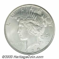 <table><tr><td><TABLE cellSpacing=0 cellPadding=0 width="100%" bgColor=#000000 border=0><TBODY> <TR><TD width="100%"><TABLE cellSpacing=1 cellPadding=3 width="100%" border=0><TBODY><TR><TD width="100%" bgColor=#79735c><FONT face=arial color=#ffffff size=3><B>Description</B> </FONT></TD></TR><TR><TD width="100%" bgColor=#ffffff><FONT face=arial size=2><B>1925-S $1 MS65 NGC.</B></I> Untoned and without appreciable surface marks. An unusual 1925-S Peace Dollar, not only because it has survived as a Gem, but due to its excellent strength of strike and hard, semi-reflective sheen combined with a near absence of mint frost. One of the most difficult issues in the series as an MS65, being currently unknown any finer. </FONT></TD></TR></TBODY></TABLE></TD></TR></TBODY></TABLE><BR><A name=PricesRealized></A><TABLE cellSpacing=0 cellPadding=0 width="100%" bgColor=#000000 border=0><TBODY><TR><TD width="100%"><TABLE cellSpacing=1 cellPadding=3 width="100%" border=0><TBODY><TR><TD width="100%" bgColor=#79735c><A name=PR><FONT face=arial color=#ffffff size=3><B>Previous Prices from Heritage Auctions</B> </FONT></A></TD></TR><TR><TD bgColor=#f6f6ed><TABLE cellSpacing=0 cellPadding=0 width="100%" border=1><TBODY><TR><TD align=middle width="33%"><B>Date</B></TD><TD align=middle width="33%"><B>Service</B></TD><TD align=middle width="33%"><B>Price</B></TD></TR><TR bgColor=whitesmoke><TD width="33%"><B>05/03/2003</B></TD><TD width="33%">PCGS</TD><TD width="33%">$11,500.00</TD></TR><TR bgColor=whitesmoke><TD width="33%"><B>07/30/2002</B></TD><TD width="33%">ANACS</TD><TD width="33%">$2,357.50</TD></TR><TR bgColor=whitesmoke><TD width="33%"><B>01/07/2000</B></TD><TD width="33%">PCGS</TD><TD width="33%">$12,650.00</TD></TR><TR bgColor=whitesmoke><TD width="33%"><B>03/21/1998</B></TD><TD width="33%">NGC</TD><TD width="33%">$7,475.00</TD></TR><TR bgColor=whitesmoke><TD width="33%"><B>05/02/1997</B></TD><TD width="33%">PCGS</TD><TD width="33%">$9,350.00</TD></TR><TR bgColor=whitesmoke><TD width="33%"><B>07/31/1993</B></TD><TD width="33%">NGC</TD><TD width="33%">$4,950.00</TD></TR><TR bgColor=whitesmoke><TD width="33%"><B>01/01/1999</B></TD><TD width="33%">NGC</TD><TD width="33%">$7,188.00</TD></TR><TR bgColor=whitesmoke><TD width="33%"><B>05/01/1999</B></TD><TD width="33%">PCGS</TD><TD width="33%">$6,900.00</TD></TR><TR bgColor=whitesmoke><TD width="33%"><B>02/01/1998</B></TD><TD width="33%">PCGS</TD><TD width="33%">$14,850.00</TD></TR></TBODY></TABLE></TD></TR><TR><TD bgColor=#ffffff><FONT face=arial size=1 ?>PLEASE NOTE: All prices realized reflect the final hammer price PLUS the buyer's premium in auctions that charge a buyer's premium. Each item has a notation at the top of the listing indicating whether that lot included a buyer's premium. Example: A item that sells with a final hammer price of $100 and a 20% buyer's premium will display with a price realized of $120. All information listed is intended to be as accurate as possible, but errors are possible. Please use this guide carefully and inform us of any inaccuracies. </FONT></TD></TR></TBODY></TABLE></TD></TR></TBODY></TABLE><BR><TABLE cellSpacing=0 cellPadding=0 width="100%" bgColor=#000000 border=0><TBODY><TR><TD width="100%"><TABLE cellSpacing=1 cellPadding=3 width="100%" border=0><TBODY><TR><TD width="100%" bgColor=#79735c colSpan=6><FONT face=arial color=#ffffff size=3><B>Price Guide*</B> </FONT></TD></TR><TR bgColor=#f6f6ed><TD align=middle><B>Grade</B> </TD><TD align=middle><B>Coin World<BR>(Trends)</B> </TD><TD align=middle><B>Numismedia<BR>Retail</B> </TD><TD align=middle><B>Numismedia<BR>Wholesale</B> </TD><TD align=middle><B>Coin<BR>Universe</B> </TD><TD align=middle><B>Heritage<BR>Value Index</B> </TD></TR><TR bgColor=#ffffff><TD align=middle>64</TD><TD align=right>$575.00</TD><TD align=right>$630.00</TD><TD align=right>$500.00</TD><TD align=right>$600.00</TD><TD align=right>$511.25</TD></TR><TR style="FONT-WEIGHT: bold" bgColor=#cccfdd><TD align=middle>65</TD><TD align=right>$20,000.00</TD><TD align=right>---</TD><TD align=right>$16,450.00</TD><TD align=right>$22,000.00</TD><TD align=right>$13,200.00</TD></TR><TR bgColor=#ffffff><TD align=middle>66</TD><TD align=right>$30,000.00</TD><TD align=right>---</TD><TD align=right>---</TD><TD align=right>---</TD><TD align=right>$20,400.00</TD></TR><TR bgColor=#ffffff><TD colSpan=6><FONT size=1>*All information listed is intended to be as accurate as possible, but errors are possible. No item may be returned or refused based on this information which is provided as a service to our customers. You should contact each pricing source directly to determine the accuracy of this information. </FONT></TD></TR></TBODY></TABLE></TD></TR></TBODY></TABLE><BR><TABLE cellSpacing=0 cellPadding=0 width="100%" bgColor=#000000 border=0><TBODY><TR><TD width="100%"><TABLE cellSpacing=1 cellPadding=3 width="100%" border=0><TBODY><TR><TD width="100%" bgColor=#79735c><FONT face=arial color=#ffffff size=3><B>Population Guide</B> </FONT></TD></TR><TR bgColor=#ffffff><TD align=middle><!-- Begin Output of Population Grid--><TABLE cellSpacing=0 cellPadding=0 width="100%" border=0><TBODY><TR><TD vAlign=center><TABLE cellSpacing=0 width="100%" border=1 cellsadding="3"><TBODY><TR><TD vAlign=center><TABLE cellSpacing=0 cellPadding=3 width="100%" border=1><TBODY><TR><TD vAlign=center align=middle bgColor=#f0f1e8 colSpan=2 <CENTER><FONT face=Arial size=2><B>PCGS Pop </B></FONT><CENTER></CENTER></TD><TD vAlign=center align=middle bgColor=#f0f1e8 colSpan=2><CENTER><FONT face=Arial size=2><B>NGC Pop</B></CENTER></FONT></TD></TR><TR><TD vAlign=center><FONT face=Arial size=2>(65)</FONT> </TD><TD vAlign=center align=right><FONT face=Arial size=2>29</FONT> </TD><TD vAlign=center><FONT face=Arial size=2>(65)</FONT> </TD><TD vAlign=center align=right><FONT face=Arial size=2>40</FONT> </TD></TR><TR><TD vAlign=center><FONT face=Arial size=2>(>65)</FONT> </TD><TD vAlign=center align=right><FONT face=Arial size=2>0</FONT> </TD><TD vAlign=center