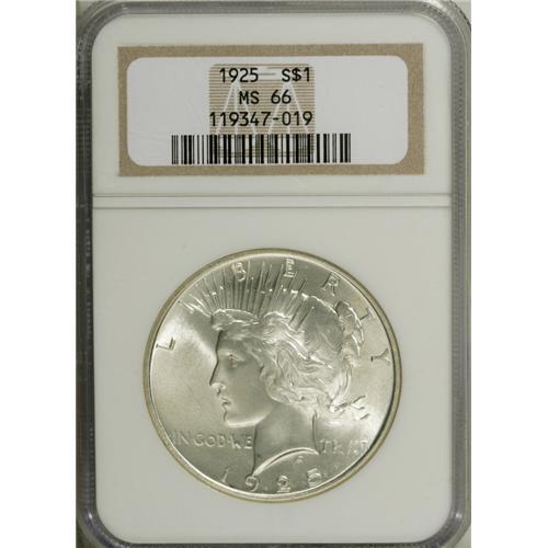 <B>1925 S$1 MS66 NGC.</B></I> Highly lustrous and exactingly struck with a hint of golden toning in the obverse fields. A superior type coin from this popular, high-mintage year.<BR><BR><b>Shipping:</b> Coins & Currency (<a target="_blank" href="http://www.heritageauctions.com/common/shipping.php">view shipping information</a>)