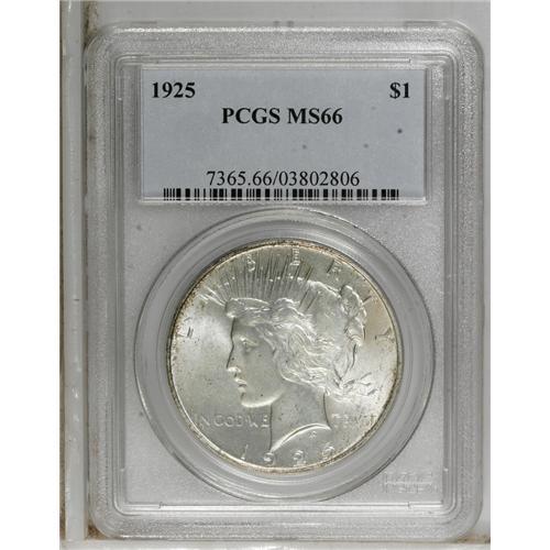 1925 S$1 MS66 PCGS. The 1925 Peace dollar is one of th