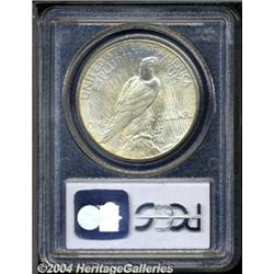 <B>1925<S$1> MS66 PCGS.</B></I> This lovely Peace dollar is exquisitely struck, with speckled gray-gold toning over fully lustrous surfaces. A few light ticks are observed on Liberty's nose and neck, and on the eagle's tail and legs. <BR><BR><B>Important notice:</B> Heritage usually auctions material at the rate of 200-250 lots per hour. On some occasions eBay Live bid software or the Internet may not be able to keep up with the pace of the auction. We recommend placing a realistic absentee bid now as insurance to avoid disappointment. Occasionally the auctioneer may eliminate or reject an eBay Live bid, and the auctioneer may also reopen a lot after the close of the eBay live bidding (usually because we missed an audience bid), and may reject your bid even if it shows you as the winning bidder. By bidding via eBay Live, you agree that Heritage may award the lot to another bidder at its sole discretion under the circumstances described above or any other reasonable circumstances. Since eBay bids are not shown to us until we open the lot on the floor, we treat those bids just like floor bids. In most cases the floor responds before the eBay bid is presented to us, due to Internet lag time, so for consistency we have made it a policy that floor bids are always considered first over tie eBay live bids. Also please note that all Heritage lots purchased through eBay Live carry a 20% Buyer's Premium. Please make sure you read the Terms and Conditions before you bid. </span></font></tr></table></td></tr></table>