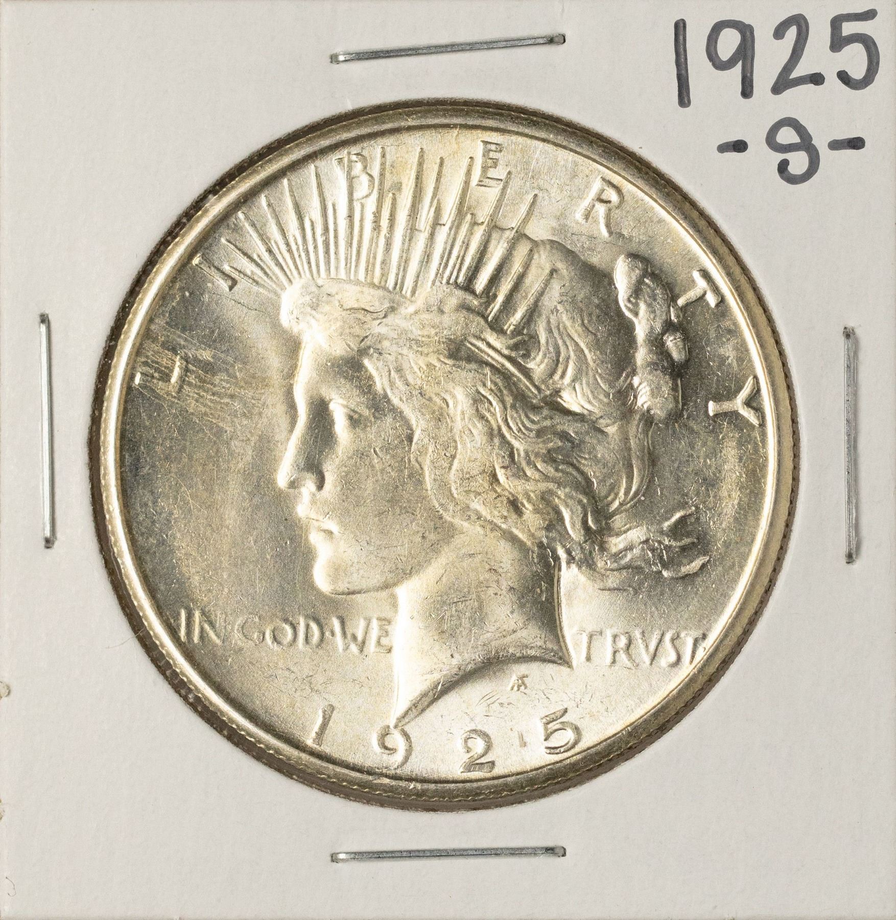One 1925-S $1 Peace Silver Dollar Coin.