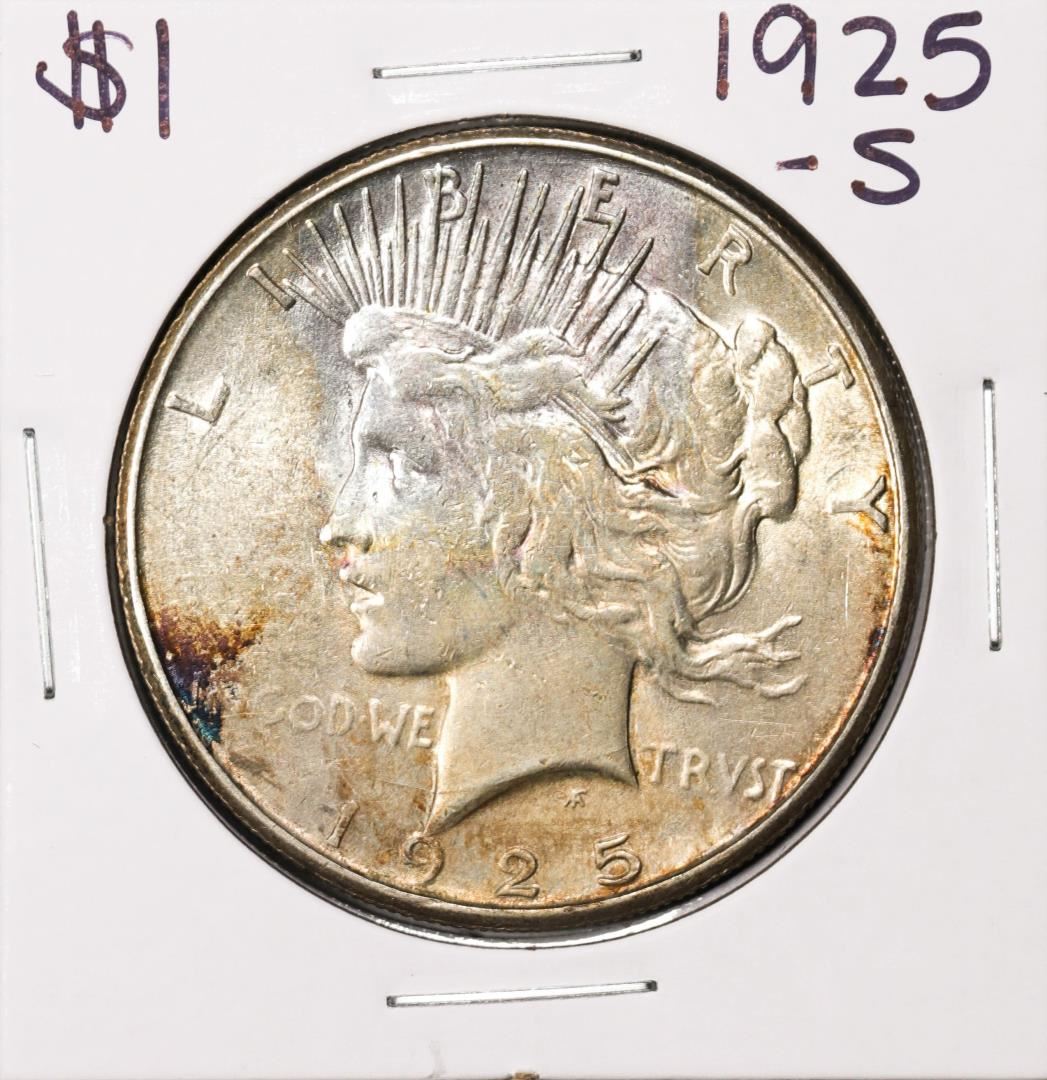 One 1925-S $1 Peace Silver Dollar Coin.