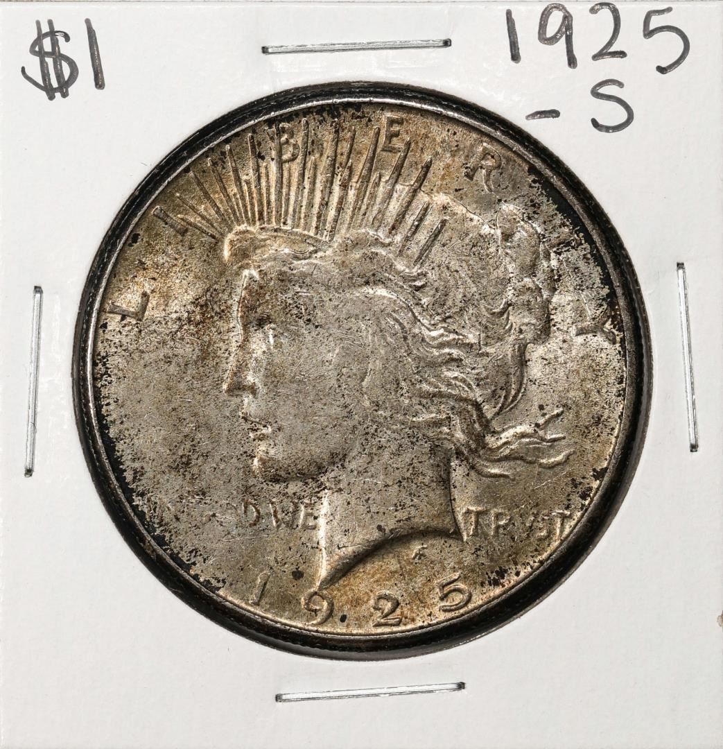 One 1925-S $1 Peace Silver Dollar Coin.
