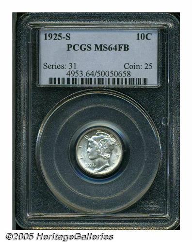 <B>1925-S<10C> MS64 Full Bands PCGS.</B></I> A nearly brilliant and boldly struck near-Gem that has only a trace of gold color in the fields. Beautifully preserved, a small area of prooflike surface is near Liberty's forehead.