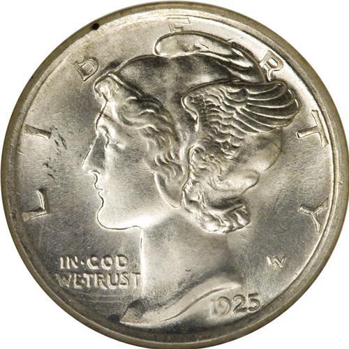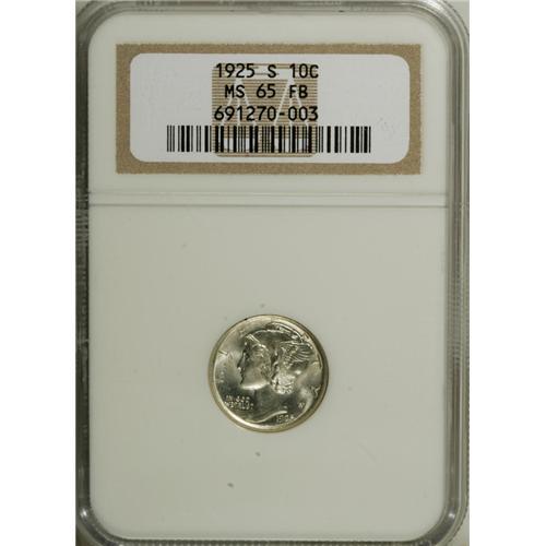 <B>1925-S 10C MS65 Full Bands NGC.</B></I> The advanced Mercury dime collector will be excited by the opportunity to acquire this example for his or her collection. Both sides of this highly lustrous Gem are sharply struck and exhibit frosty luster with no trace of toning. A remarkable example with exceptional aesthetic appeal. Census: 25 in 65 Full Bands, 16 finer (12/06).<BR><I>From The Frank J. McCarthy Jr. Collection.</B></I><BR><BR><b>Shipping:</b> Coins & Currency (<a target="_blank" href="http://www.heritageauctions.com/common/shipping.php">view shipping information</a>)