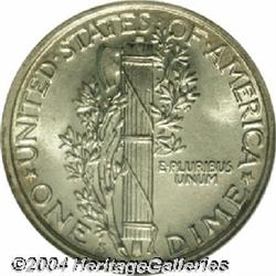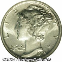 <B>1925-S<10C> MS65 Full Bands NGC.</B></I> When you stop to consider the typical strike, regardless of denomination, among 1925-S coinage issues, you will appreciate the truly important nature of this offering. The surfaces are fully brilliant save for a trace of pale gold along the left reverse border. All of the individual design elements are well detailed, including the central horizontal bands on the reverse. <BR><BR><B>Important notice:</B> Heritage usually auctions material at the rate of 200-250 lots per hour. On some occasions eBay Live bid software or the Internet may not be able to keep up with the pace of the auction. We recommend placing a realistic absentee bid now as insurance to avoid disappointment. Occasionally the auctioneer may eliminate or reject an eBay Live bid, and the auctioneer may also reopen a lot after the close of the eBay live bidding (usually because we missed an audience bid), and may reject your bid even if it shows you as the winning bidder. By bidding via eBay Live, you agree that Heritage may award the lot to another bidder at its sole discretion under the circumstances described above or any other reasonable circumstances. Since eBay bids are not shown to us until we open the lot on the floor, we treat those bids just like floor bids. In most cases the floor responds before the eBay bid is presented to us, due to Internet lag time, so for consistency we have made it a policy that floor bids are always considered first over tie eBay live bids. Also please note that all Heritage lots purchased through eBay Live carry a 20% Buyer's Premium. Please make sure you read the Terms and Conditions before you bid.