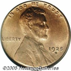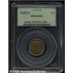 <B>1925-S 1C MS64 Red PCGS.</B></I> A great condition rarity among Lincoln cent issues, particularly in full red condition. The present example is quite bold for the date and exhibits original mint brilliance with some slight muting of color on each side. A couple of spots are seen on the reverse.