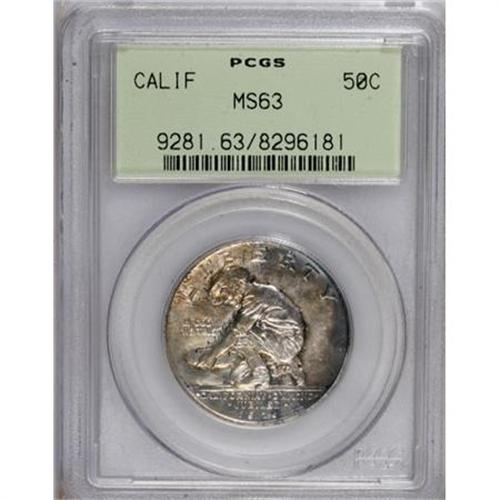<B>1925-S 50C California MS63 PCGS.</B></I> PCGS Population (1097/2341). NGC Census: (539/2634). Mintage: 86,394. Numismedia Wsl. Price for NGC/PCGS coin in MS63: $221. (#9281)<BR><BR><b>Shipping:</b> Coins & Currency (<a target="_blank" href="http://www.heritageauctions.com/common/shipping.php">view shipping information</a>)