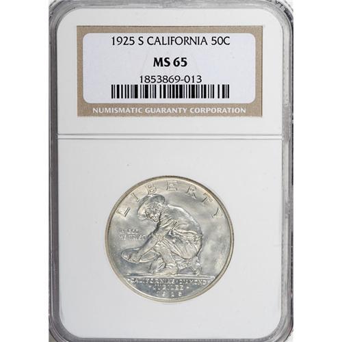1925-S 50C California MS65 NGC. This boldly impressed