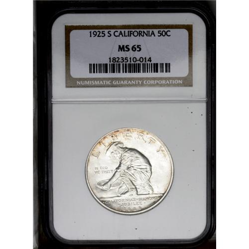 <B>1925-S<50C> California MS65 NGC.</B></I> Typically sharply struck and highly lustrous, with light russet toning near the borders and just one or two small milling marks on the otherwise expertly preserved surfaces.