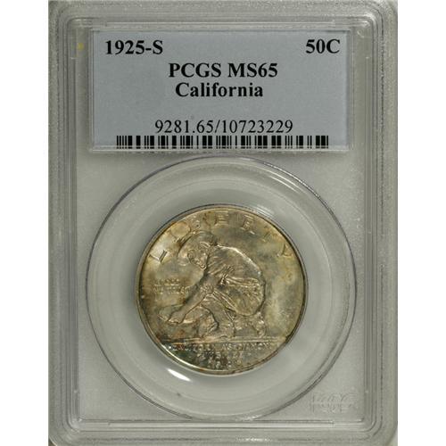 1925-S 50C California MS65 PCGS. Gold and lavender pat