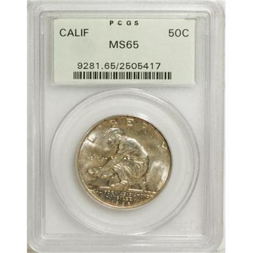 <B>1925-S 50C California MS65 PCGS.</B></I> PCGS Population (661/368). NGC Census: (815/495). Mintage: 86,394. Numismedia Wsl. Price for NGC/PCGS coin in MS65: $925. (#9281)<BR><BR><b>Shipping:</b> Coins & Currency (<a target="_blank" href="http://www.heritageauctions.com/common/shipping.php">view shipping information</a>)