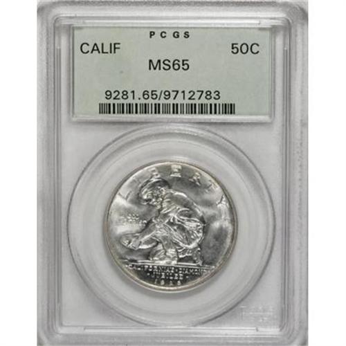 <B>1925-S 50C California MS65 PCGS.</B></I> A flashy and nearly brilliant Gem with a remarkably clean appearance. UNUM is softly brought up, but the remainder of the design is sharply struck. Certified in a green label holder.<BR><BR><b>Shipping:</b> Coins & Currency (<a target="_blank" href="http://www.heritageauctions.com/common/shipping.php">view shipping information</a>)