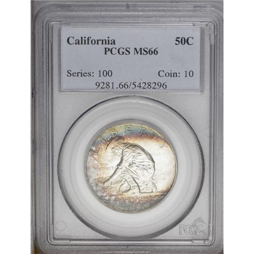 <B>1925-S<50C> California MS66 PCGS.</B></I> A lovely Premium Gem with brilliant surfaces at the center of each side, surrounded by iridescent peripheral toning.