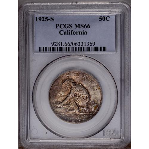 <B>1925-S<50C> California MS66 PCGS.</B></I> Lustrous and well struck, with dappled red-orange and russet toning over underlying silver-gray surfaces. Carefully preserved and free of distracting marks. An attractive Premium Gem.