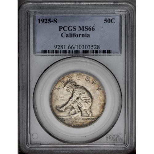 1925-S 50C California MS66 PCGS. Virtually mark-free, 1925-S[50C] California MS66 PCGS.