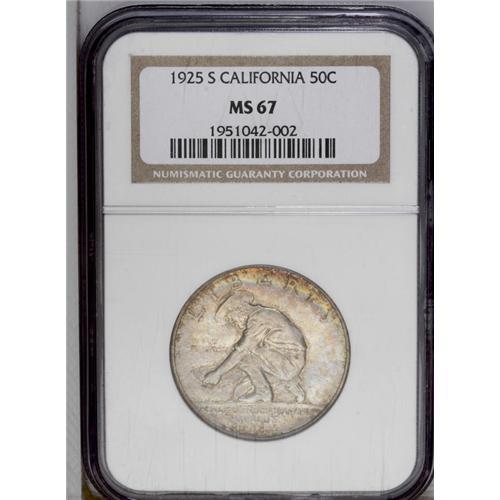 1925-S 50C California MS67 NGC. Both sides exhibit a m 1925-S[50C] California MS67 NGC.