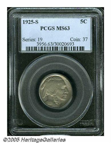 <B>1925-S<5C> MS63 PCGS.</B></I> A typically struck example that has lovely lavender and gold patina. The obverse is especially well preserved. The fields have an 'orange peel' texture, as made due to the late state of the dies.
