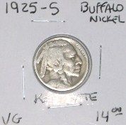 1925-S BUFFALO NICKEL RED BOOK VALUE IS $14.00+ *NICE KEY DATE EARLY VERY GOOD GRADE NICKEL*!! NICKEL CAME OUT OF SAFE!! ***Coin, Currency & All Items Listed in this auction - Grades, Conditions and Values are not Safe Deposit Coins LLC Responsibilty. Grades, Condition and Values are determined by Consigner(s) & Buyers ONLY