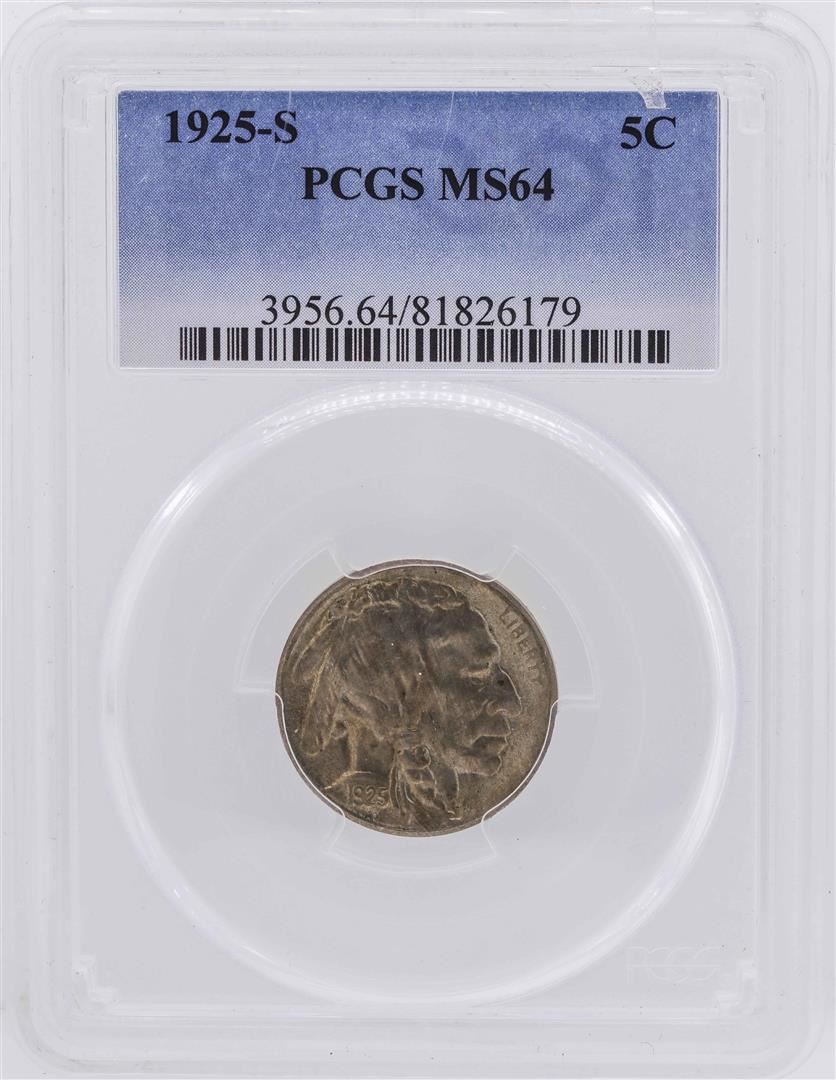 One 1925-S Buffalo Nickel Coin PCGS MS64. PCGS Graded.