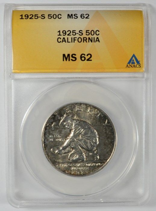 1925-S CALIFORNIA COMMEM. HALF DOLLAR, ANACS MS-62 LOOKS MUCH BETTER