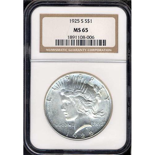 A coin whose most arresting aspect is its frosted cartwheel mint luster. Full spinning luster on both sides, and of the gem quality that is so rarely seen on the S-mint dates in the Peace dollar series. Practically fully struck, with just a suggestion of weakness at the middles.
