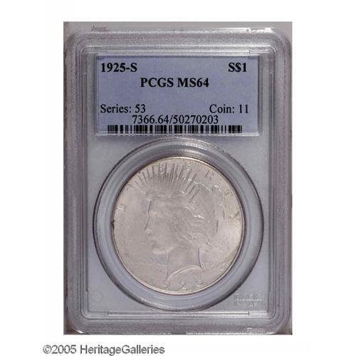 1925-S S$1 MS64 PCGS. Chestnut and silver-gray col 1925-S[S$1] MS64 PCGS.