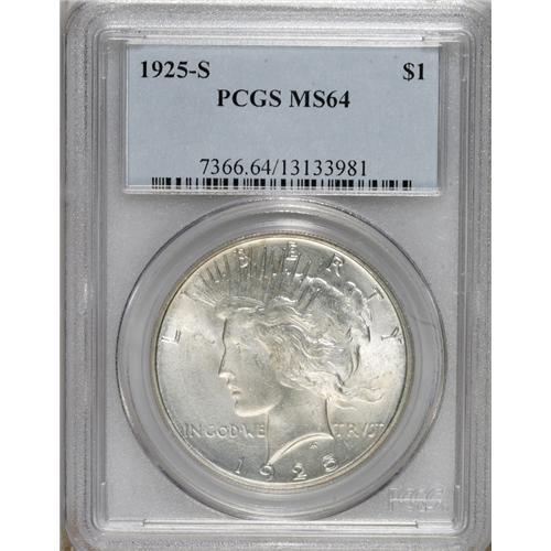 1925-S S$1 MS64 PCGS. Intensely lustrous surfaces disp
