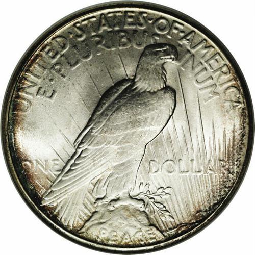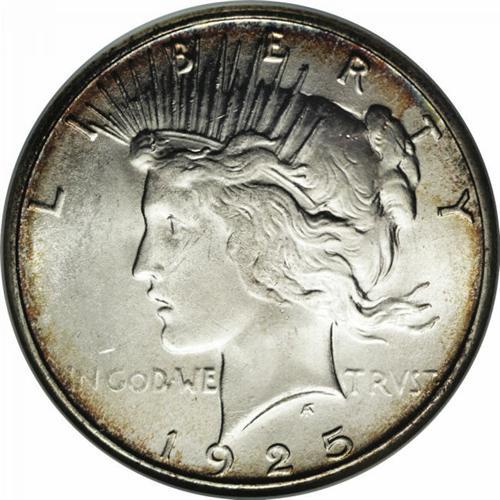 <B>1925-S<img border='0' src='http://www.heritagecoins.com/images/star.gif' width=10 height=10>$1> MS65 NGC.</B></I> The typical 1925-S is weakly struck and heavily marked, and thus Gems are virtually non-existent. Even dispersal of the vast Redfield holdings failed to bring any noticeable increase of Gems onto the market. This is a superior quality piece that has frosted mint luster and exceptionally clean surfaces. The strike, of course, is not complete. However, the details are uniformly and lightly impressed; meaning, that all of the design elements are present, just incompletely brought up. Mostly brilliant overall, some deep honey-golden patina lurks at the peripheries. A superior 1925-S and one that would be difficult to improve upon. Census: 46 in 65, 0 finer (4/06).