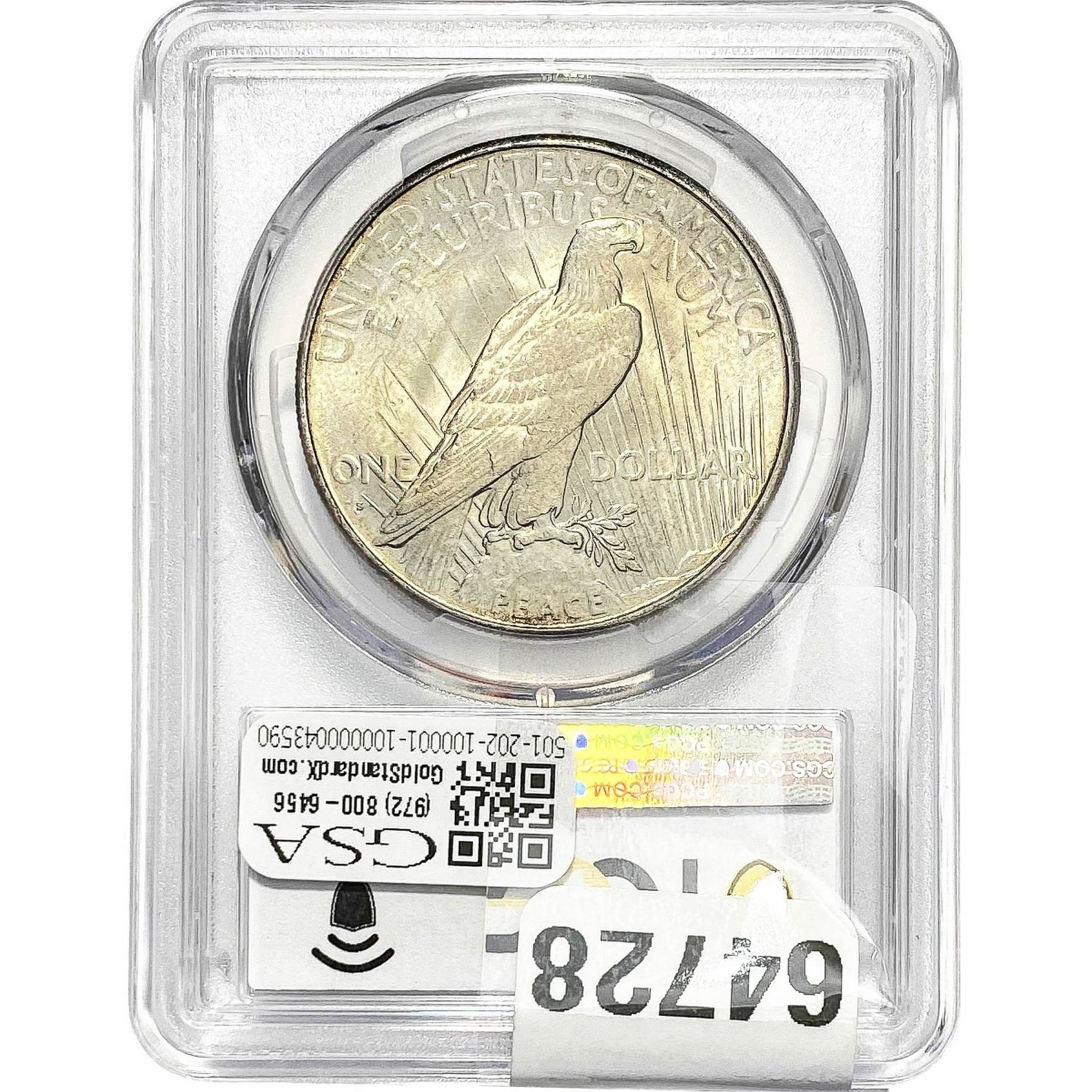 COINS AND CURRENCY LISTED IN GSA’S CATALOG AS GRADED AND ENCAPSULATED BY PCGS, NGC, ANACS, ICG, PCGS CURRENCY, PMG, PCGS BANKNOTE GRADING, CMC OR ANY OTHER THIRD-PARTY GRADING SERVICE ARE LIKEWISE SOLD “AS-IS” EXCEPT AS EXPRESSLY SET FORTH HEREIN. ALL THIRD-PARTY GRADING SERVICE GUARANTEES, INCLUDING AUTHENTICITY, ARE THE SOLE RESPONSIBILITY OF THE THIRD-PARTY GRADING SERVICE AND NOT WARRANTIES OR GUARANTEES OF GSA. BIDDERS SHOULD CONTACT THESE THIRD-PARTY GRADING SERVICES DIRECTLY WITH RESPECT TO ANY CLAIMS OR QUESTIONS THEY MAY HAVE CONCERNING THEIR GUARANTEES AND WARRANTIES. BIDDERS ACKNOWLEDGE AND AGREE THAT AUCTIONEER IS NOT BOUND BY OR LIABLE FOR ANY OPINION OR CERTIFICATION BY ANY THIRD-PARTY GRADING SERVICE. REMOVAL OF A PRODUCT FROM ITS PROTECTIVE CASING OR HOLDER OR ALTERATION OF ANY COIN HOLDER WAIVES ALL RIGHTS CONCERNING THE PRODUCT CONTAINED THEREIN.