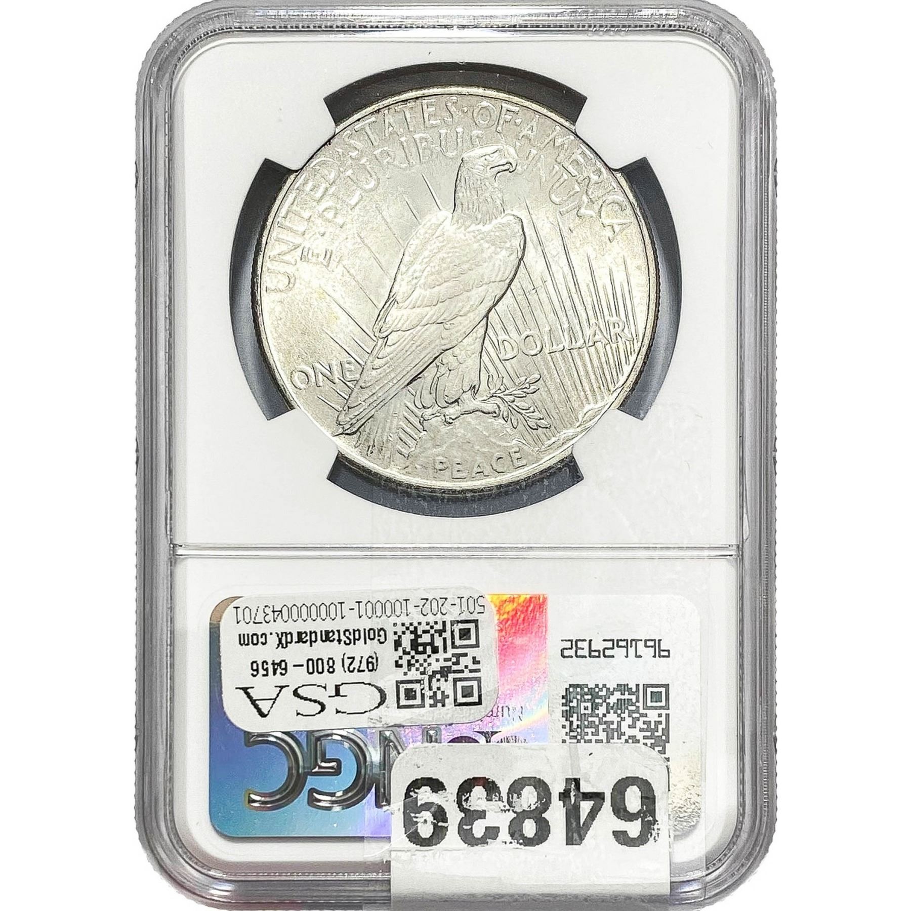 e. Coins sold referencing a third-party grading service are sold “AS IS” without any express or implied warranty, except for a guarantee by GSA that they are genuine. Removal or alteration of the holder, voids all of Bidder’s claims concerning that Product. Certain warranties may be available from the grading services and Bidders are referred to them for further details: Numismatic Guaranty Corporation (NGC), PO Box 4776, Sarasota, FL 34230, www.ngccoin.com/services/writtenguarantee.asp; Professional Coin Grading Services (PCGS), PO Box 9458, Newport Beach, CA 92658, www.pcgs.com/guarantee.html; ANACS, 6555 S. Kenton St., Ste. 303, Englewood, CO 80111; and Independent Coin Grading Co. (ICG), 7901 East Bellview, Ave., Suite 50, Englewood, CO 80111.