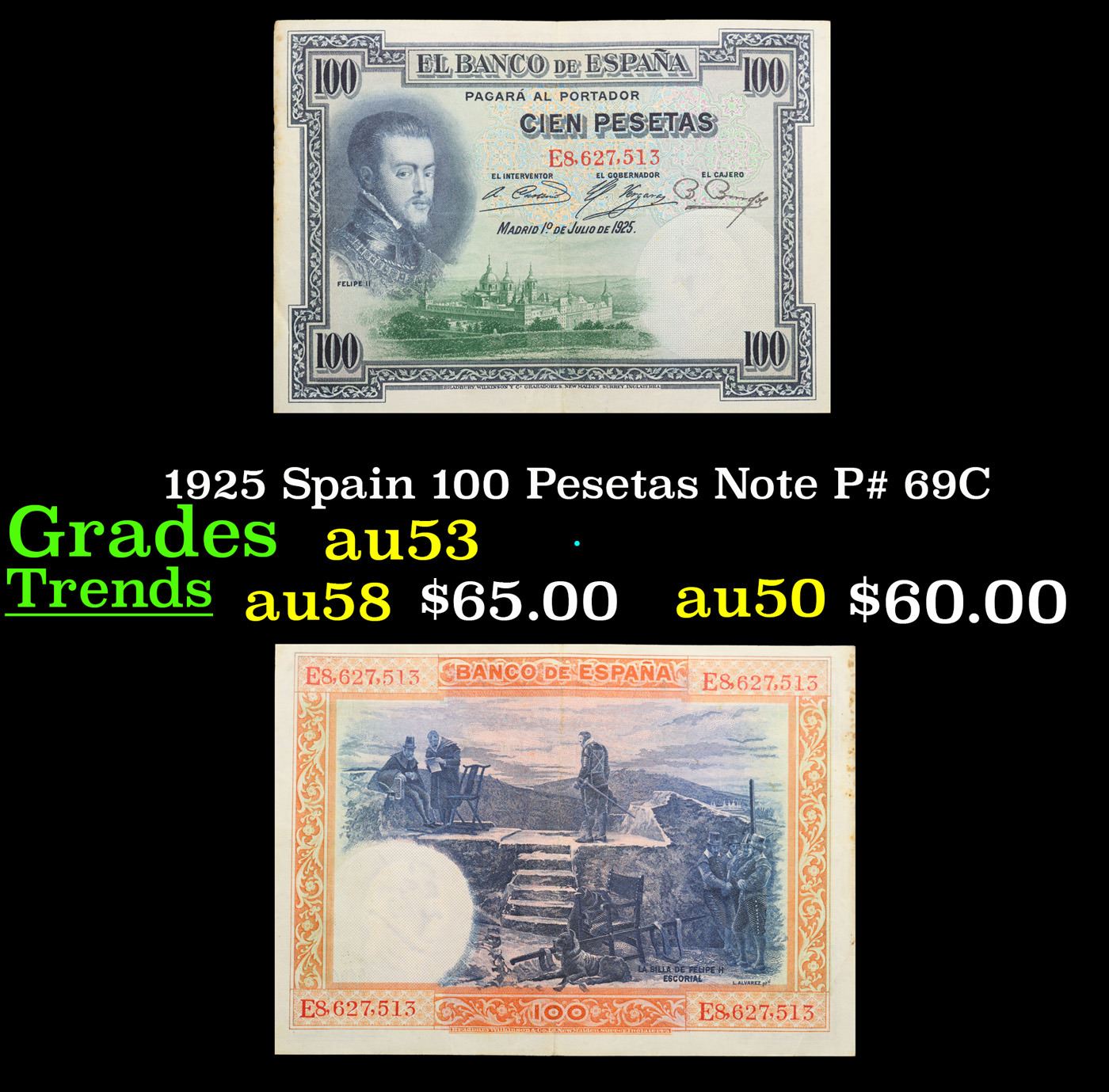 1925 Spain 100 Pesetas Note P# 69C Grades Select AU.