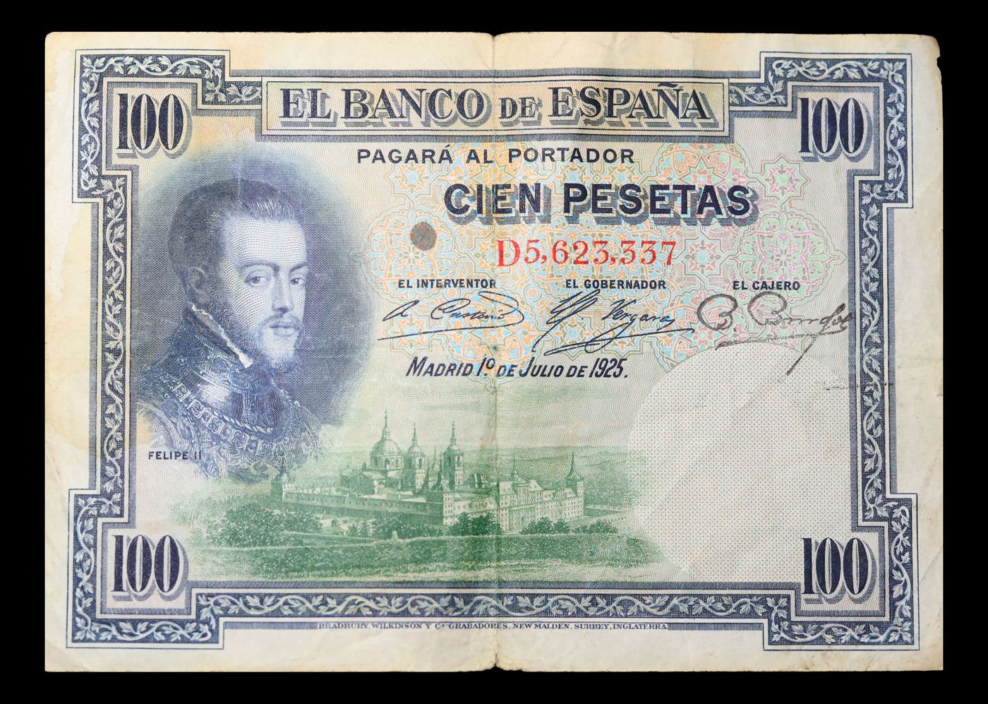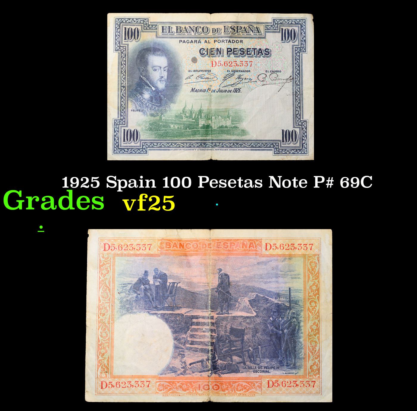 1925 Spain 100 Pesetas Note P# 69C Grades vf+.