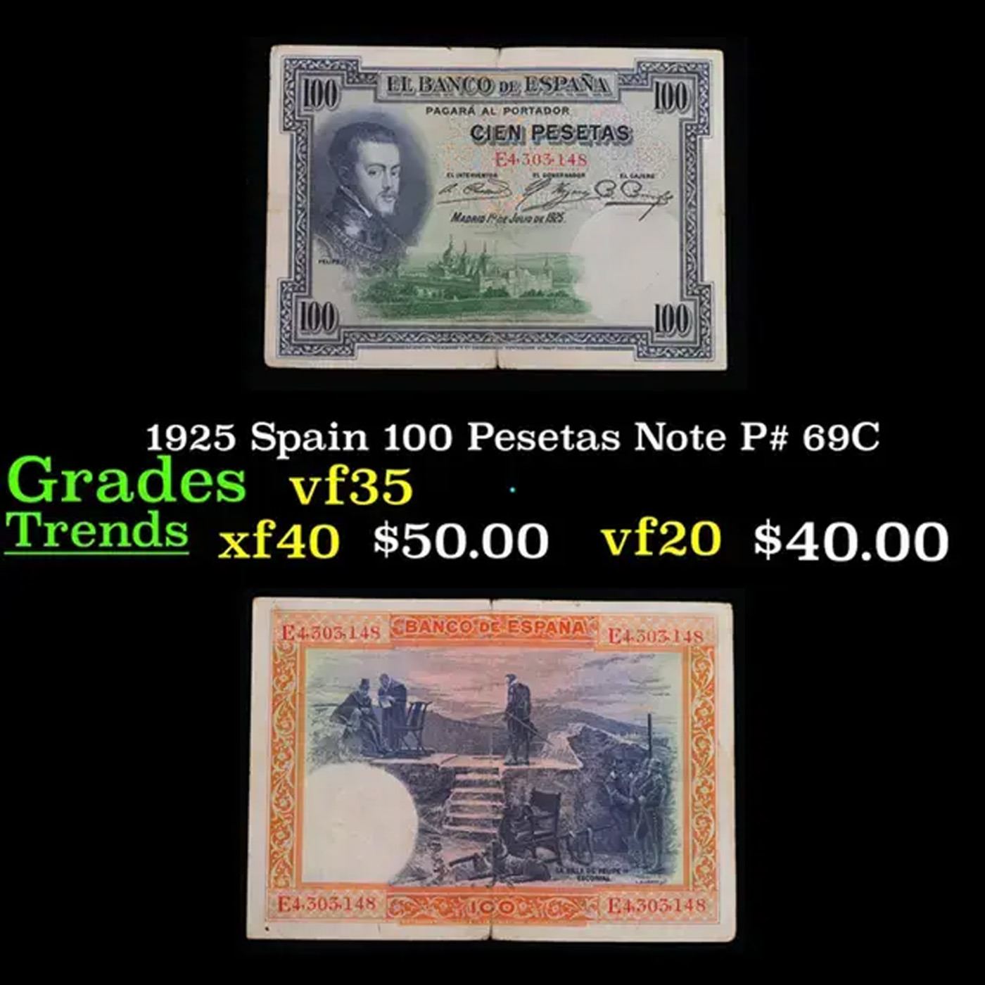 1925 Spain 100 Pesetas Note P# 69C Grades vf++.