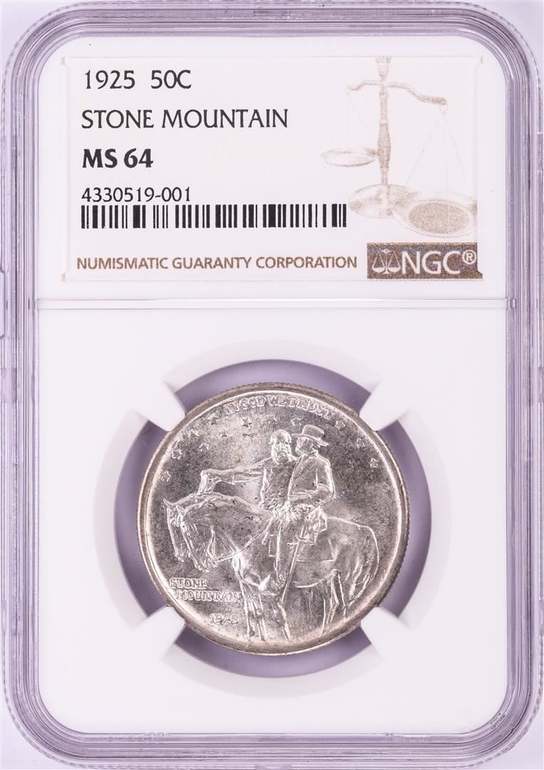 One 1925 Stone Mountain Commemorative Half Dollar Coin NGC MS64. NGC Certified.