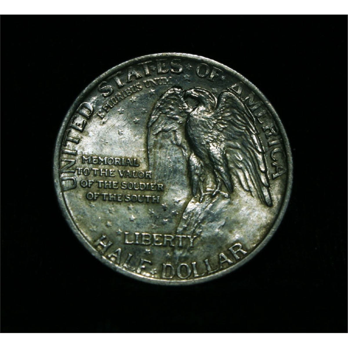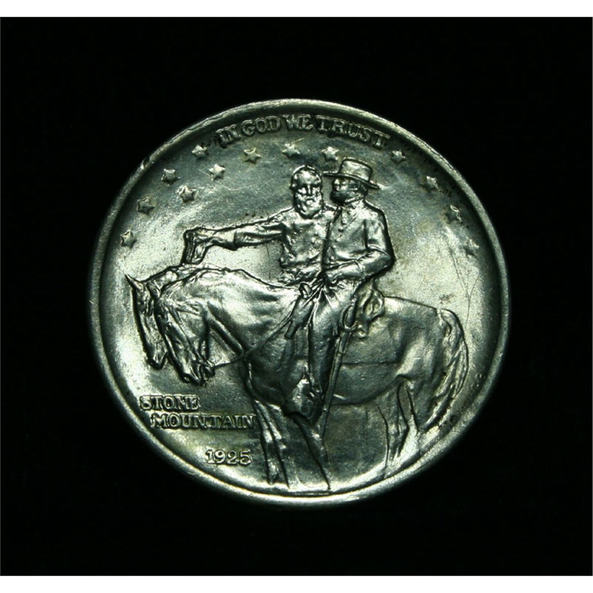 Nice Lustrous example with all original appearance. One of the most Beloved Commemoratives. It celebrates the construction of a monument carved into The Stone Mountain outside of Atlanta, except the Monument was not completed till 1970 some 45 years after is minting. The original designer of the monument was discharged after a falling out and went on to create Mount Rushmore. When Examining a Stone Mountain Commemorative examine General Lee’s elbow and the eagle’s breast for the first signs of wear. Coin World's Coin Values lists ms64 at $110 and The Wholesale Greysheet lists ms64 at $125. Estimated Value $120
