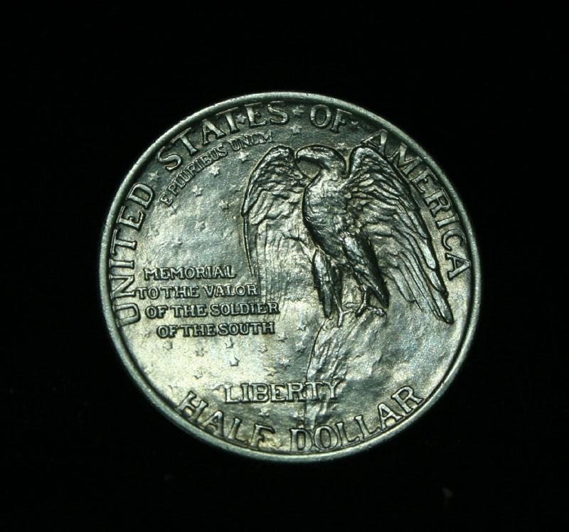 One of the most Beloved Commemoratives. It celebrates the construction of a monument carved into The Stone Mountain outside of Atlanta, except the Monument was not completed till 1970 some 45 years after is minting. The original designer of the monument was discharged after a falling out and went on to create Mount Rushmore. When Examining a Stone Mountain Commemorative examine General Lee’s elbow and the eagle’s breast for the first signs of wear. Coin World's Coin Values lists ms64 at $110 and The Wholesale Greysheet lists ms64 at $125. Estimated Value $120